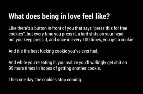 Loss aversion is why we don't bale out of losing bets on the stock market. But it also screws up marriages, because we don't want to lose a fight. Refuse to apologize because don't want to lose face. Refuse to appreciate good stuff in front of you because all you can think about is how much fun life used to be.